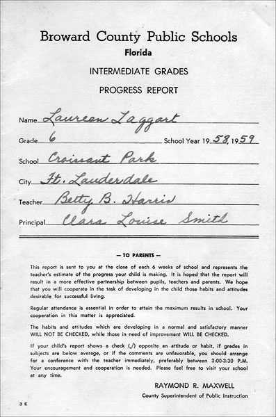 Croissant Park 6th Grade report card front cover