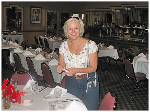 Linda Doll helps prepare the banquet room